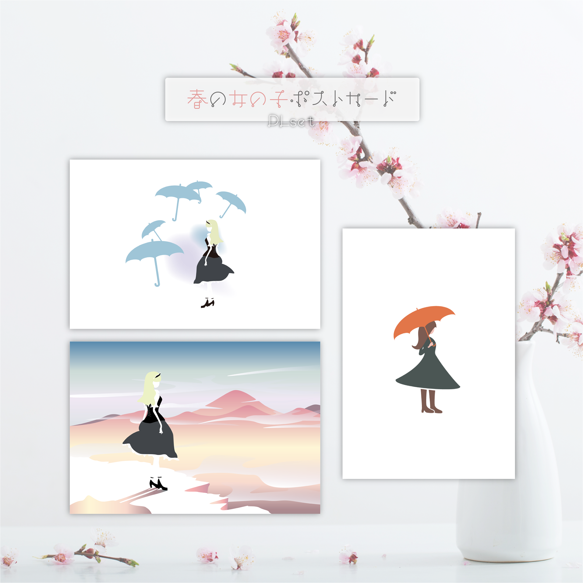 春の女の子ポストカードセット / Spring Girl Postcard Set
