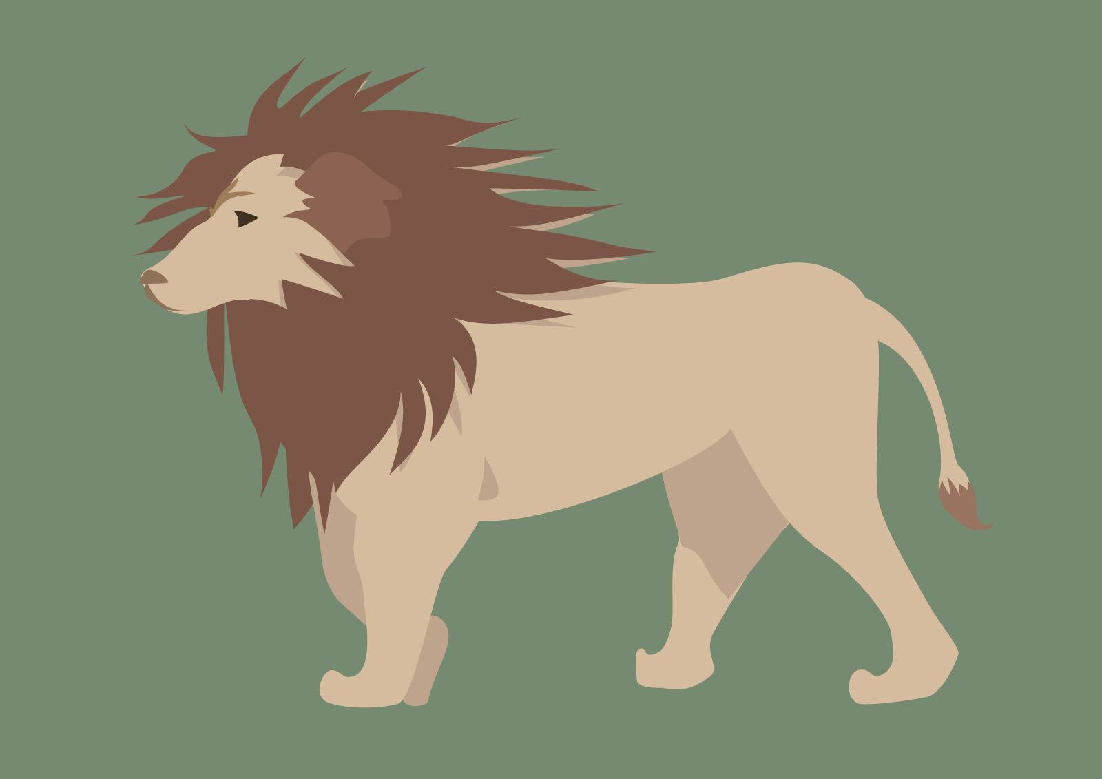 "I use Adobe Illustrator's Pen Tool to connect curves and meticulously shape each object..jpg] Since this piece was a self-initiated sample, I gathered feedback from my family and refined the lion’s physique to improve its overall balance..jpg] This iterative process ensures that the final result is both visually striking and anatomically well-proportioned."